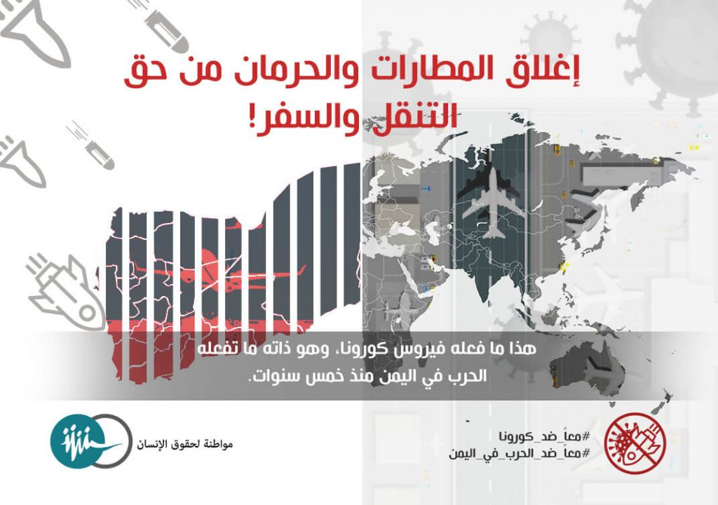 إغلاق المطارات والحرمان من حق التنقل والسفر! هذا ما فعله فيروس #كورونا #كوفيد19، وهو ذاته ما تفعله الحرب في #اليمن منذ خمس سنوات. #معاً_ضد_كورونا #معاً_ضد_الحرب_في_الي