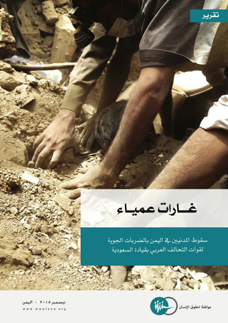 في ساعة مبكرة من فجر 26 مارس 2015 شنت مقاتلات حربية غارات على مواقع عسكرية في العاصمة اليمنية صنعاء، شكلت تنفيذاً لإعلان المملكة العربية السعودية بدء عملية عسكرية على رأس تحالف عربي من عشر دول ضد قوات الرئيس السابق علي عبدالله صالح وجماعة الحوثيين – انصار الله – التي سيطرت على السلطة بالقوة في 21 سبتمبر 2014م.جاء هذا التدخل بعد يومين من طلب قدمه الرئيس اليمني عبد ربه منصور هادي إلى مجلس التعاون الخليجي للتدخل وتثبيت شرعيته وإعادة تمكينه من السلطة إثر تقدم قوات الحوثي وصالح إلى مشارف مدينة عدن جنوب اليمن وفرار الرئيس هادي إلى العاصمة السعودية، الرياض.ومنذ 26 مارس 2015، شنت مقاتلات التحالف العربي بقيادة السعودية آلاف الضربات الجوية على أهداف لقوات صالح والحوثي، غير أن عدداً كبيراً منها طال أهدافاً مدنية تسببت بقتل وجرح مئات المدنيين، بينهم عشرات الأطفال والنساء، تركزت معظمها في تسع محافظات يتناول هذا التقرير صنوفاً منها.وعلى الرغم من تصريحات الناطق الرسمي لقوات التحالف، العميد أحمد عسيري، بأن الأولوية في هذه الحملة العسكرية هو أمن وسلامة المواطنين اليمنيين مؤكداً على دقة العمليات العسكرية، إلا ان عدداً كبيراً من الغارات الجوية للتحالف ضربت أهدافاً مدنية تنوعت بين استهدافٍ للمدنيين وتدمير مساكن ومنشآت ومرافق مدنية وبنى تحتية على نحو قد يرقى بها الى جرائم الحرب.يسلط هذا التقرير الضوء على 44 واقعة لضربات جوية شنتها مقاتلات التحالف العربي واصابت مدنيين في تسع محافظات يمنية هيصنعاء، تعز، لحج، إب، الحديدة، صعدة، حجة، البيضاء وذمار خلال الفترة من مارس وحتى اكتوبر 2015م.وقعت هذه الضربات الجوية غالباً والناس يعيشون حياتهم الطبيعية، إما أن يكونوا في الحدائق، أو في الأسواق، أو في منازلهم بعيدين عن المواقع العسكرية.ومن بين هذه الضربات الجوية، قد تغدو مدينة المخاء الساحلية المطلة على البحر الأحمر غرب محافظة تعز أكثر الأمكنة استحضاراً كلما احتاج المعنيون بتوثيق حرب اليمن إلى شاهد على هول ما طال المدنيين جراء أخطاء الحملة العسكرية التي شنتها قوات التحالف العربي بقيادة السعودية في هذه البلاد الفقيرة.فقد شهدت المدينة مساء 24 من يوليو 2015 أشد الهجمات دموية ضد المدنيين، سقط فيها 65 مدنياً بينهم 13 طفلاً و12 امرأة وأصيب 36 آخرين على الأقل بينهم 14 طفلاً و13 امرأة، عندما اغارت مقاتلات التحالف على مجمع سكني يضم نحو 200 شقة مخصصة لأسر موظفي محطة توليد الكهرباء هناك.وفي الوقت الذي سيكون فيه من الصعب على أهالي منطقة سنبان بمحافظة ذمار نسيان يوم السابع من أكتوبر 2015 ففيه خبروا كيف تنقلب مناسبة فرح إلى فاجعة كبيرة خلال ثوان قليلة، فلن يكون من السهل كذلك على سكان قرية واحجة شمال غرب محافظة تعز نسيان الـ 28 من سبتمبر حين تحولت حفلة زفاف نسوية الى مأتم خالص في غضون لحظات.ففي سنبان التابعة لمديرية ميفعة عنس شرق مدينة ذمار أحالت قنبلة أطلقتها مقاتلة للتحالف العربي حفلة زفاف إلى مناسبة حزينة حينما لقي 40 مدنياً بينهم 15 طفلاً و14 امرأة حتفهم، وأصيب 42 مدنياً، بينهم 14 امرأة و13 طفلاً بالضربة التي دمرت منزلاً من ثلاثة طوابق كان بداخله عشرات المدنيين الذين توافدوا من ثلاث قرى مجاورة للاحتفال بعرس أحد الأهالي.أما في قرية واحجة سقط 26 مدنياً بينهم 13 طفلاً و12 امرأة بقصف لمقاتلات التحالف طال مخيم عرس في قرية واحجة يوم 28 سبتمبر 2015، بصاروخين لمقاتلات التحالف وقع الصاروخ الأول بالقرب من مخيم للرجال وأصاب الصاروخ الثاني مخيماً للنساء.وحققت منظمة مواطنة لحقوق الانسان في الوقائع الـ 44 من خلال البحث الميداني وتنفيذ مقابلات مع 155 شخص من الضحايا الناجين، أهالي الضحايا، شهود عيان ومصادر طبية.وتوصلت التحقيقات التي نفذتها منظمة مواطنة لحقوق الانسان الى ان هذه الغارات أودت بحياة 615 مدنياً على الأقل، بينهم 120 امرأة و220 طفلاً، وجرحت 678 آخرين، بينهم 125 امرأة و167 طفلاً، في تسع محافظات يمنية.وبينت نتائج التقرير أن معظم هذه 